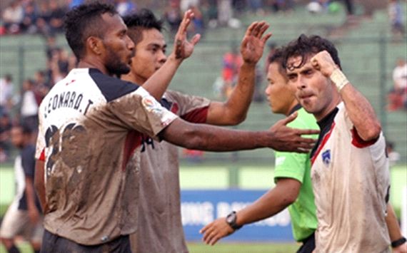 pelanggaran Rivki kepada Sekou di menit ke-74. Namun Gaston yang